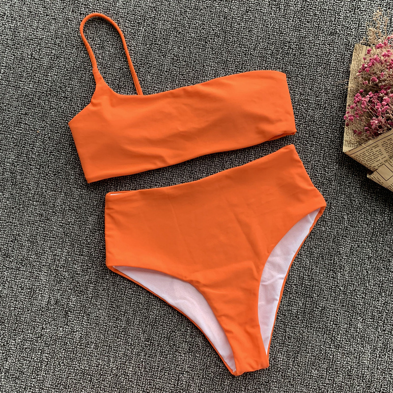 Dive into summer with our trendy solid color high-waisted bikini that perfectly combines style and comfort. Designed specifically for women, this bikini set features a sexy one-shoulder design that enhances your silhouette while providing a chic look at the beach or poolside.